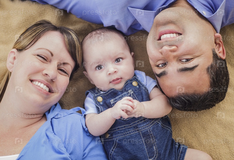 Семья смешанного происхождения отдыхает в парке на одеяле