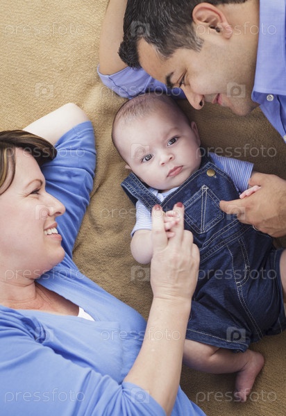 Семья смешанного происхождения отдыхает в парке на одеяле