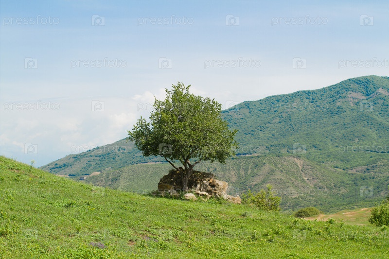 Одинокое дерево в горах Грузии