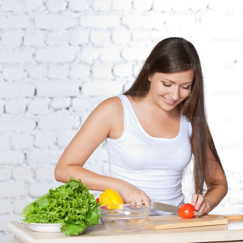 Женщина готовит салат