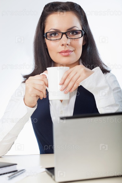 Бизнес-леди пьет кофе