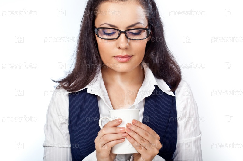 Бизнес-леди пьет кофе