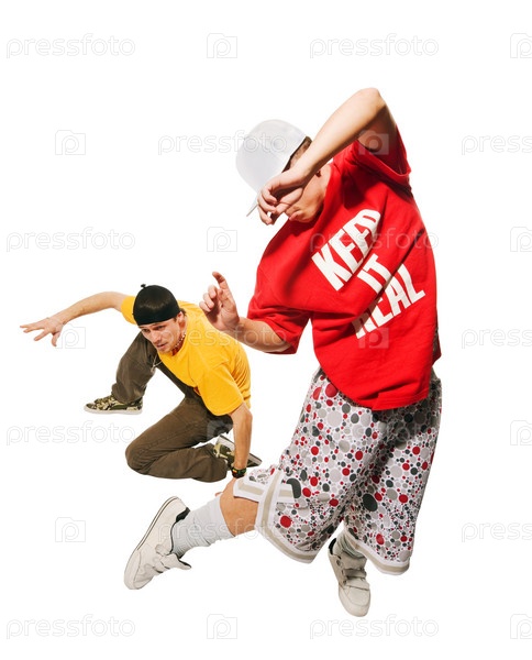 Молодые танцоры брейк-данса, изолированные на белом фоне