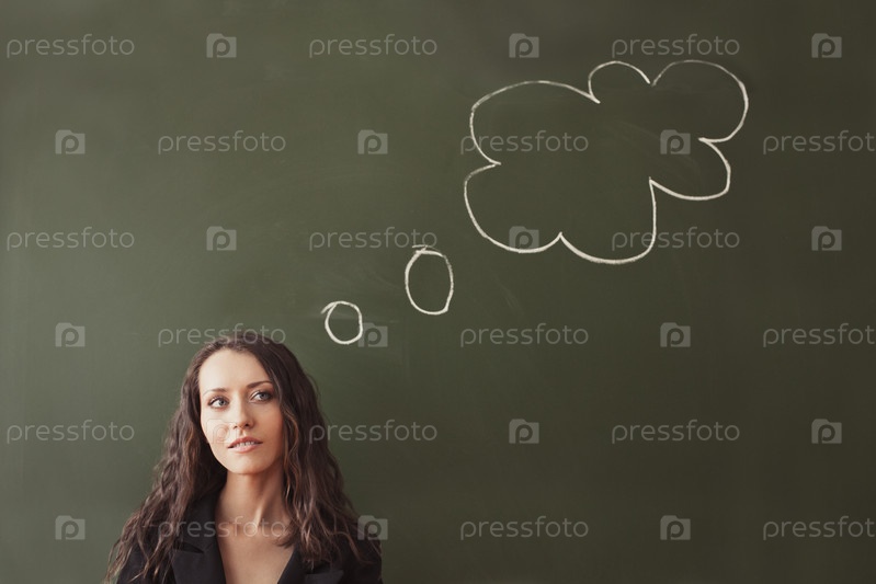 Женщина у школьной доски с шаблоном для текста