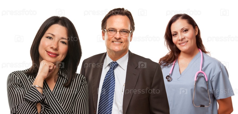 Женщина с мужем и врач на белом фоне