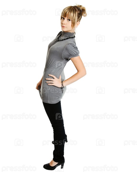 Красивая молодая женщина на простом фоне