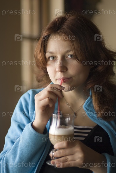 Рыжая девочка наслаждается коктейлем