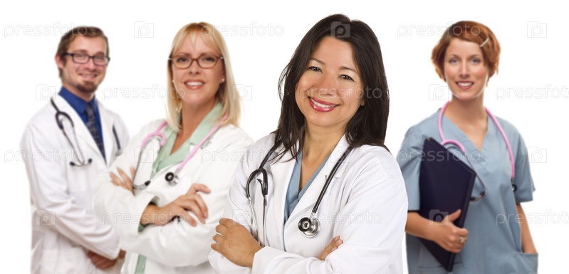 Группа врачей или медицинских сестер на белом фоне
