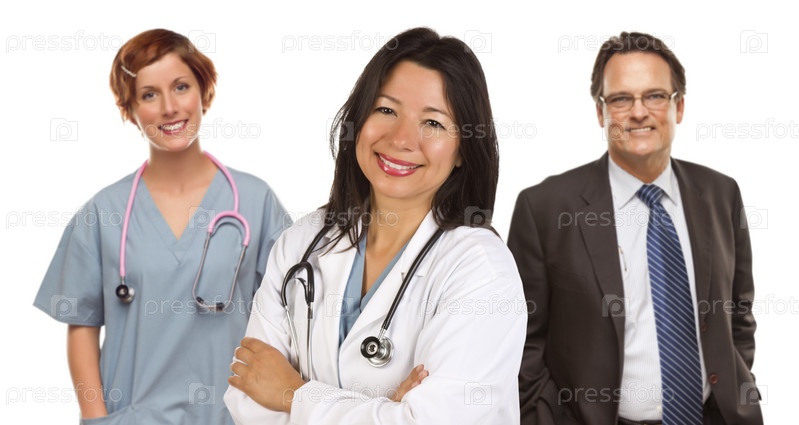 Группа врачей или медицинских сестер на белом фоне