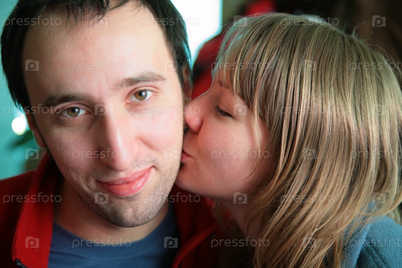 Девушка целует мужчину