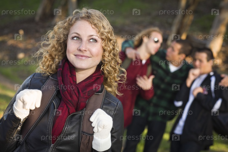 Парни любуются хорошенькой девушкой