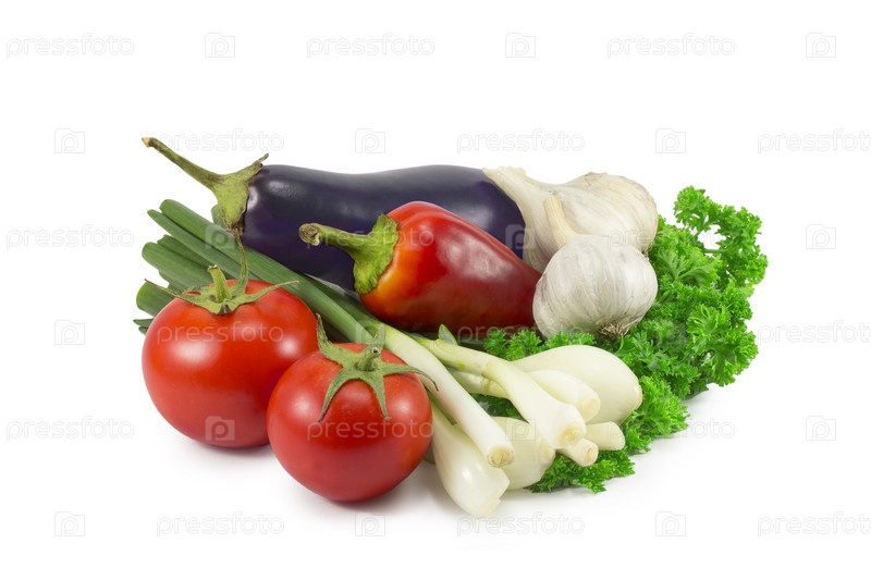 Зеленый лук, помидоры, чеснок, перец, баклажаны, петрушка