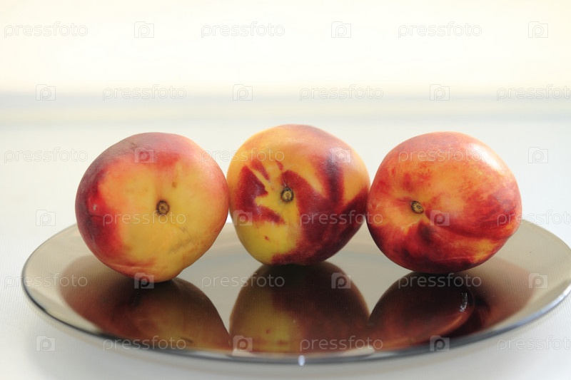 Красивые вкусные персики на светлом фоне