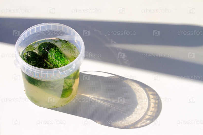 Красивые вкусные огурцы в рассоле на светлом фоне