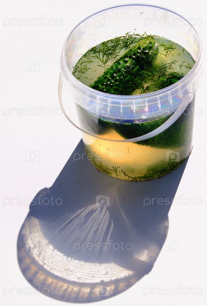 Красивые вкусные огурцы в рассоле на светлом фоне