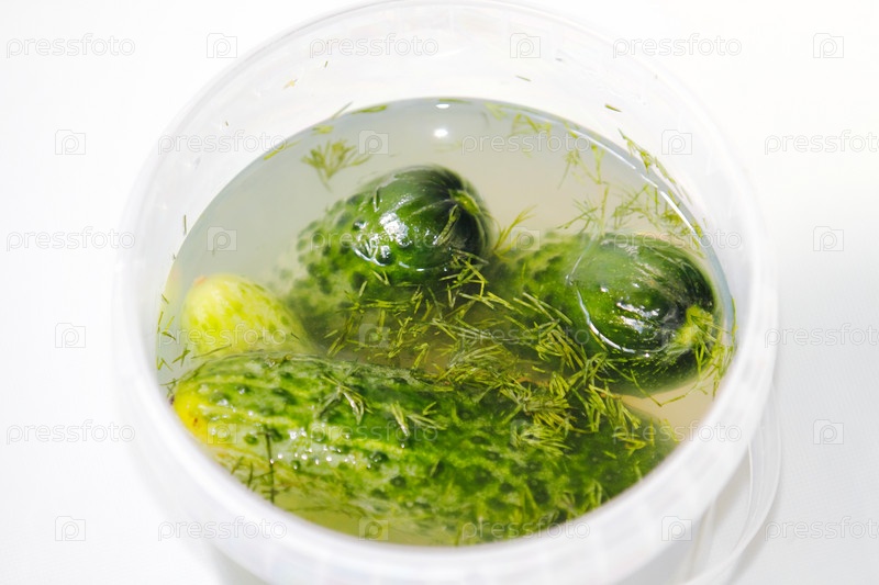 Красивые вкусные огурцы в рассоле на светлом фоне