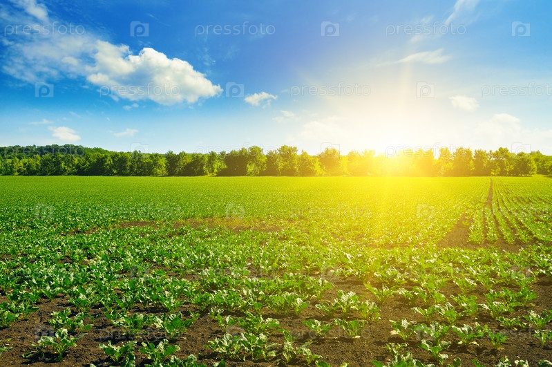 Зеленые поля свеклы и голубое небо