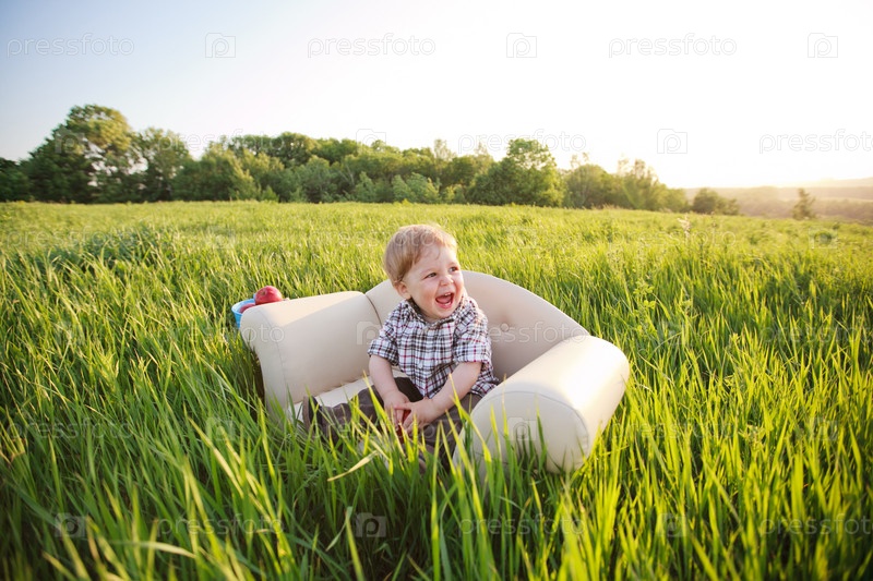 Маленький мальчик сидит в кресле