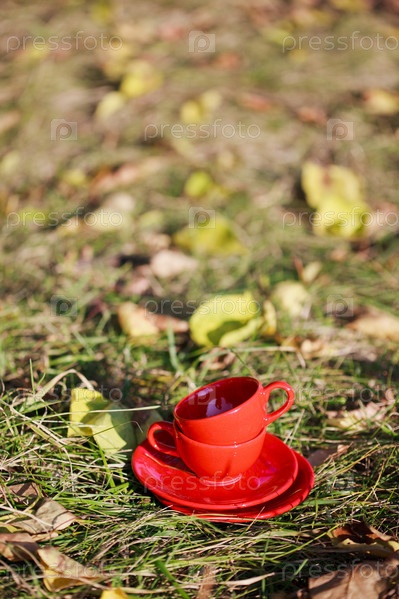 Две красные чашки на траве