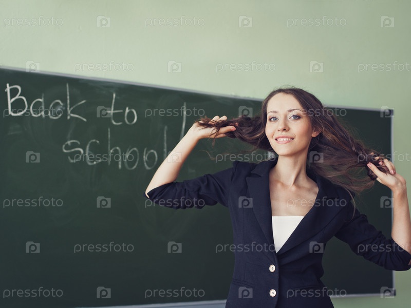 Женщина стоит у школьной доски