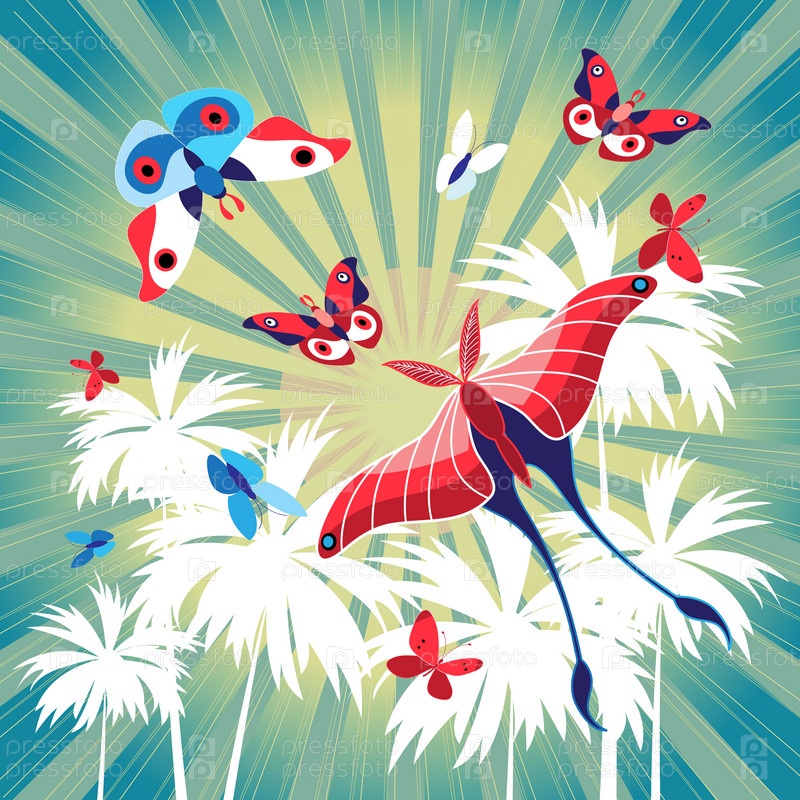 Яркое лето с пальмами и бабочками