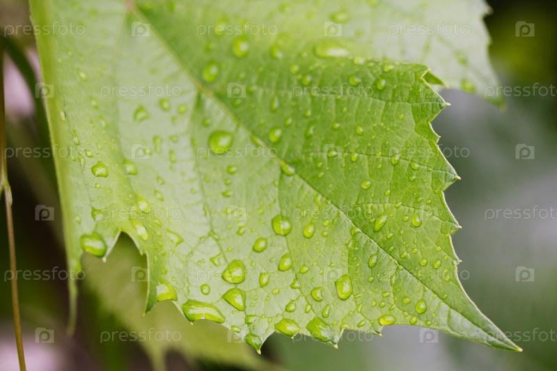 Капли дождя на листьях винограда