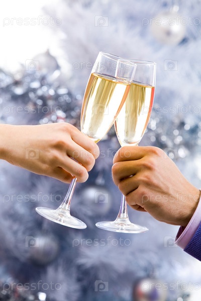 Близкий план флейты шампанского в человеческих руках во время празднования