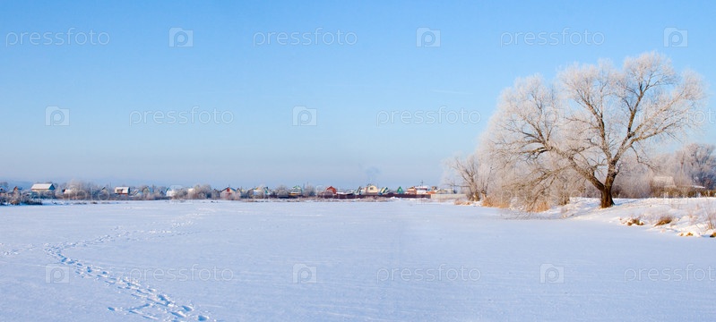 Красивый зимний пейзаж. Панорама