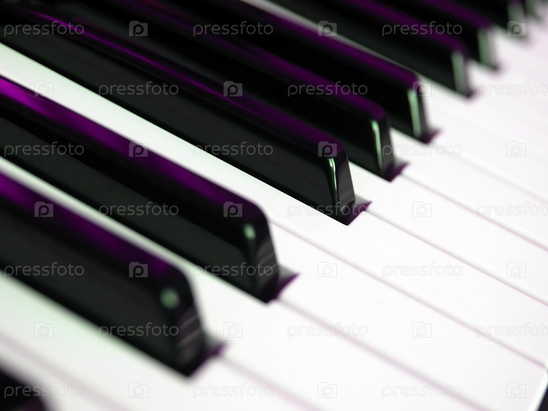 Фрагмент черно-белой клавиатуры пианино, выборочный фокус