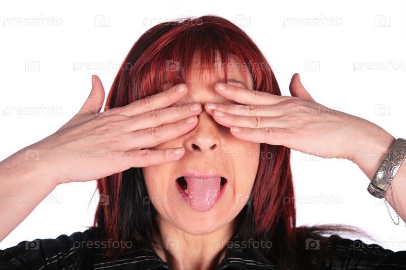 Женщина закрыла глаза и показывает язык