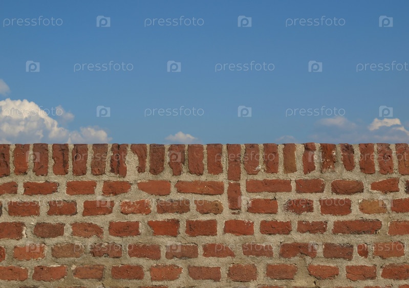 Стена с голубым небом и облаками