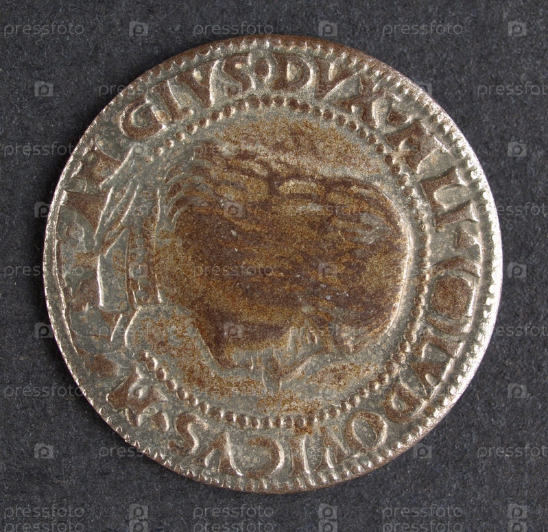 Древняя римская монета на черном фоне