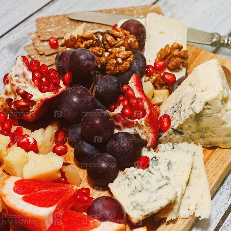 Нарезанный сыр с фруктами