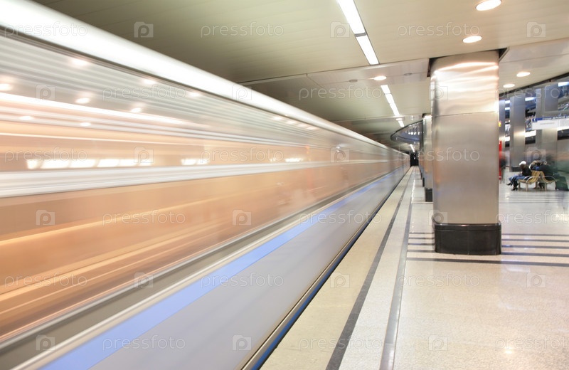 Движущийся поезд на станции метро