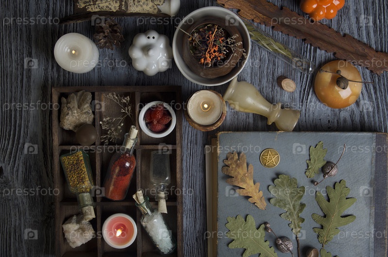 Магические ингредиенты на деревенском фоне