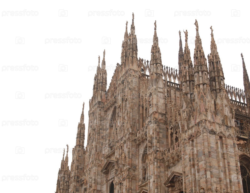 Готический Кафедральный собор Дуомо ди Милано, изолирован на белом фоне