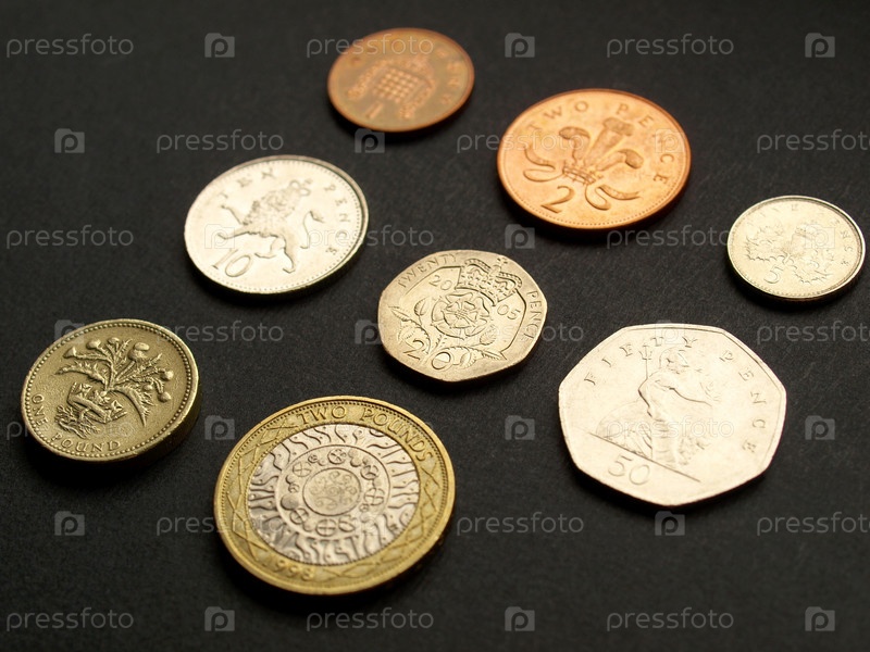 Британские фунты (валюта Великобритании) на темном фоне