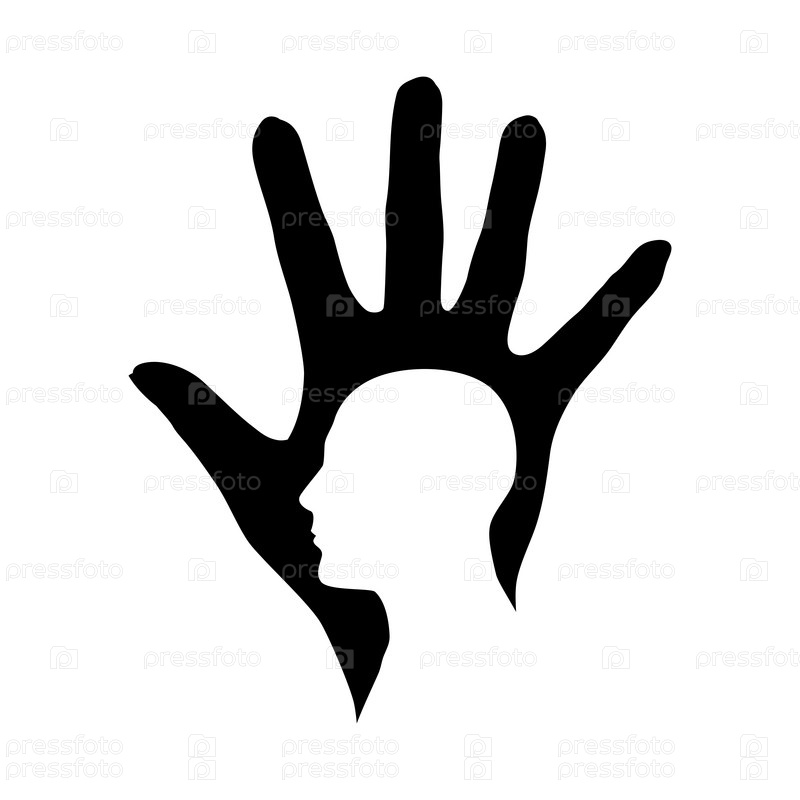 Силуэт руки и головы. Иллюстрация на белом фоне