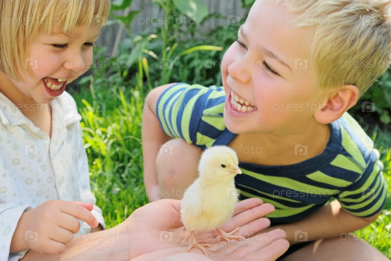 Мальчик, девочка и цыпленок