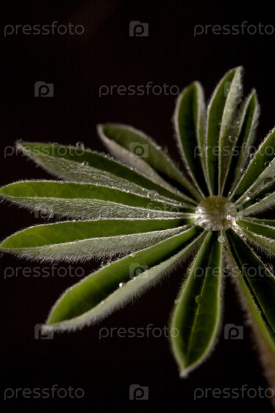 Зеленые листья растения покрытые росой на черном фоне