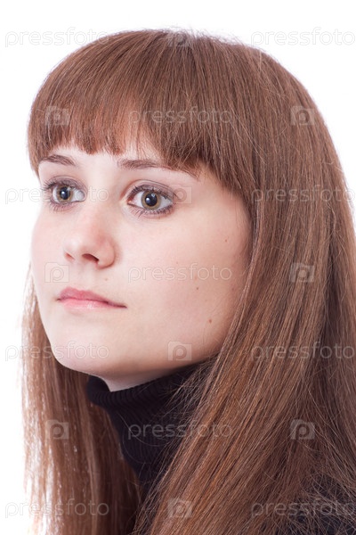Портрет молодой девушки на белом фоне