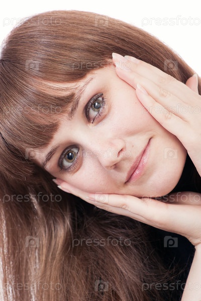 Портрет молодой девушки на белом фоне