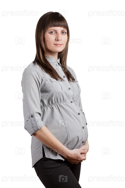 Красивая беременная женщина, изолированная на белом фоне
