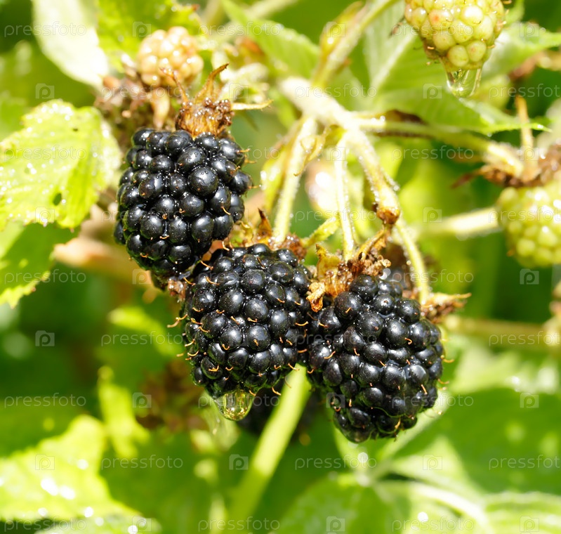 Спелая ежевика на ветке в саду
