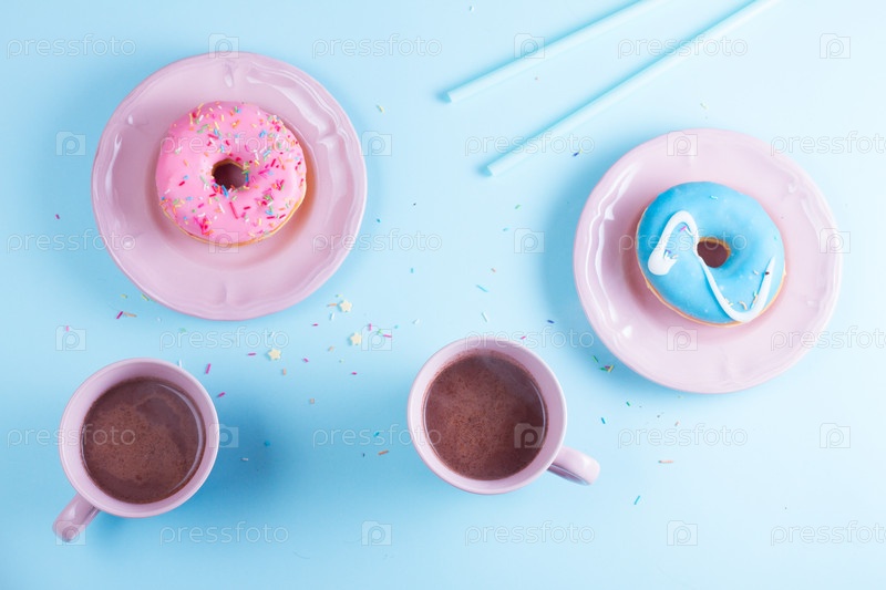 Пончики и кофе на синем