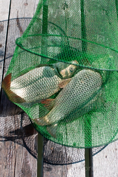 Зеленая сеть с карпами