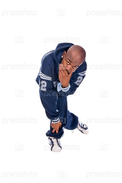 Молодой танцор хип-хопа на белом фоне
