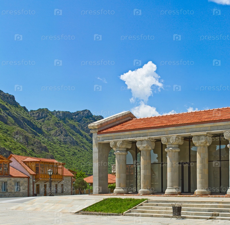 Архитектура на фоне гор и голубого неба, Грузия