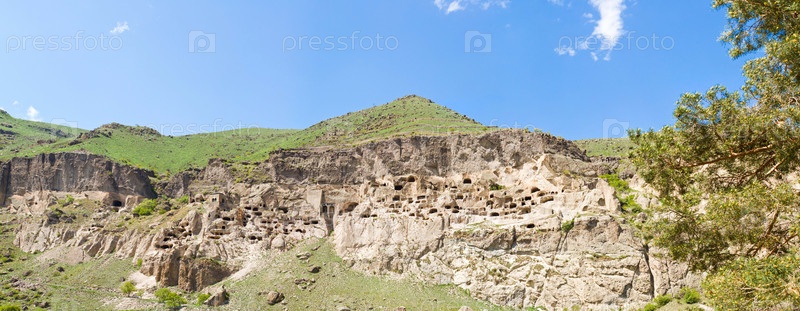 Панорама монастыря в средневековом пещерном городе Вардзия, Грузия, Закавказье