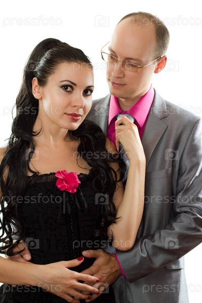 Влюбленная пара - муж и жена на белом фоне